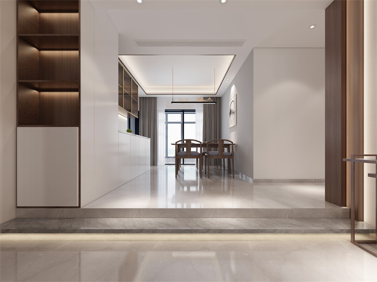 兩位業主頗為喜歡中式,在原來的家里保留下來了,很多他們一起生活的點點滴滴。所以在即將裝修的新家,主人有很多自己的想法和建議,也保留了很多原來的物件。設計師因為做過樓上的戶型之后也有了自己很多想法。在原來的想法更近一步了。在新裝修的玄關位置紅色掛件是原來的房子的玄關的掛件。業主對這個副掛件有著很深厚的感情,所以沒有把這一份感情舍掉。在設計上我用了很想法,但是一直都不怎么如意,后面設計上停空了幾天又開始動筆的,在這個背景上我們不能太唐突但是也不能無法融入。所以我給背景做兩個燈槽的設計,通過燈光把我們想要表達的表達出來。在整個空間剛恰到好處。