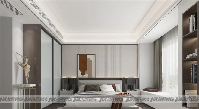 主臥的衣柜藏有“玄機(jī)”,與床頭柜輕觸的抽屜不過是個(gè)偽裝者。打開柜門上下兩個(gè)掛衣桿解決掛衣收納難題且完美避開床頭柜。深淺不一的咖色系與灰色系,沉穩(wěn)內(nèi)斂又豐富。