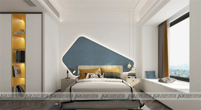 黑白灰不應(yīng)該是永遠(yuǎn)的百搭色,我們的眼睛需要另外一種更加治愈的顏色。設(shè)計(jì)師運(yùn)用時(shí)髦的亮黃色與藍(lán)色,讓專屬于孩子的睡眠空間溫暖而有時(shí)尚感。整體在軟裝和墻體的條型的映襯下格外明朗。