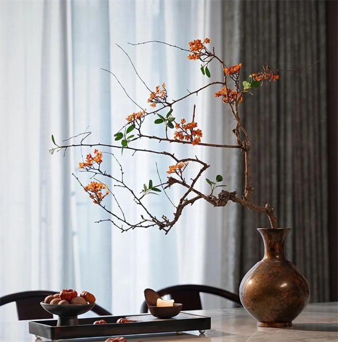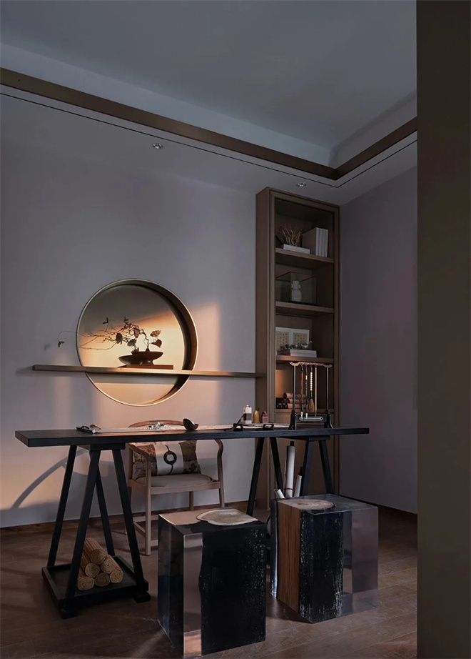 從中式和現代中尋找到適合空間的藝術品,強調了空間的別趣和精致,傳承著東方的新貴和雅致。