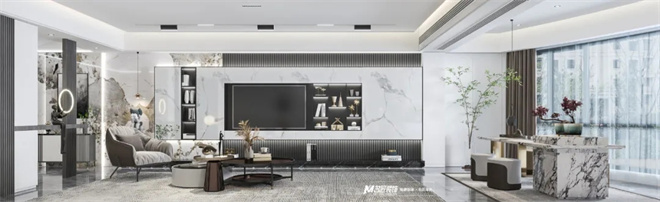 客廳黑白灰為主色調,使得整體空間產生豐富的層次感,適當的留白,在這種現代美學的基礎上進行藝術化的改造。