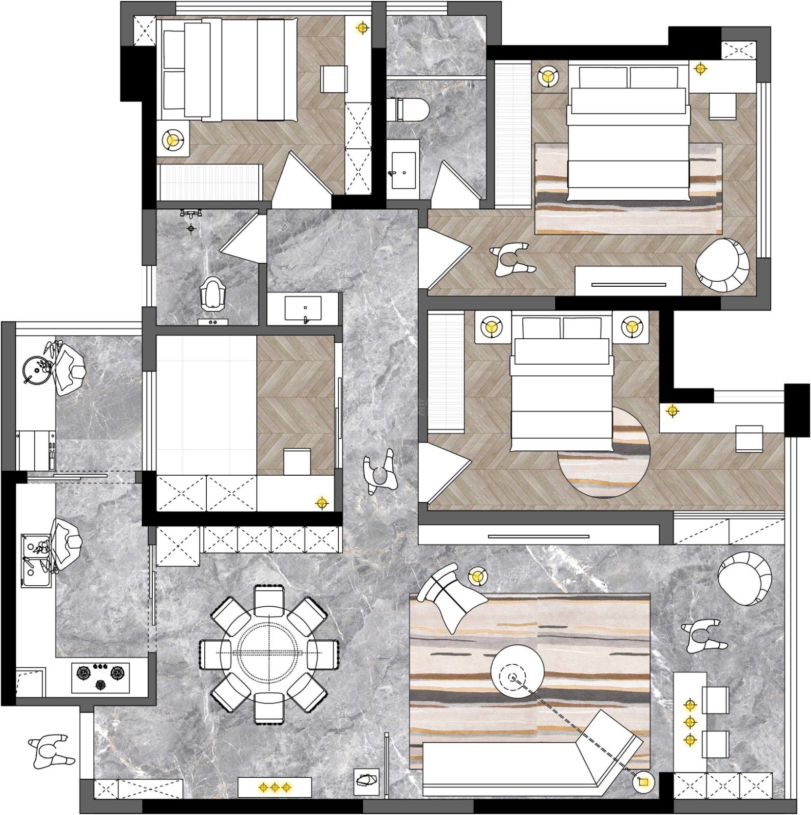 茂名永盛中心城三居現代簡約風格裝修效果圖
