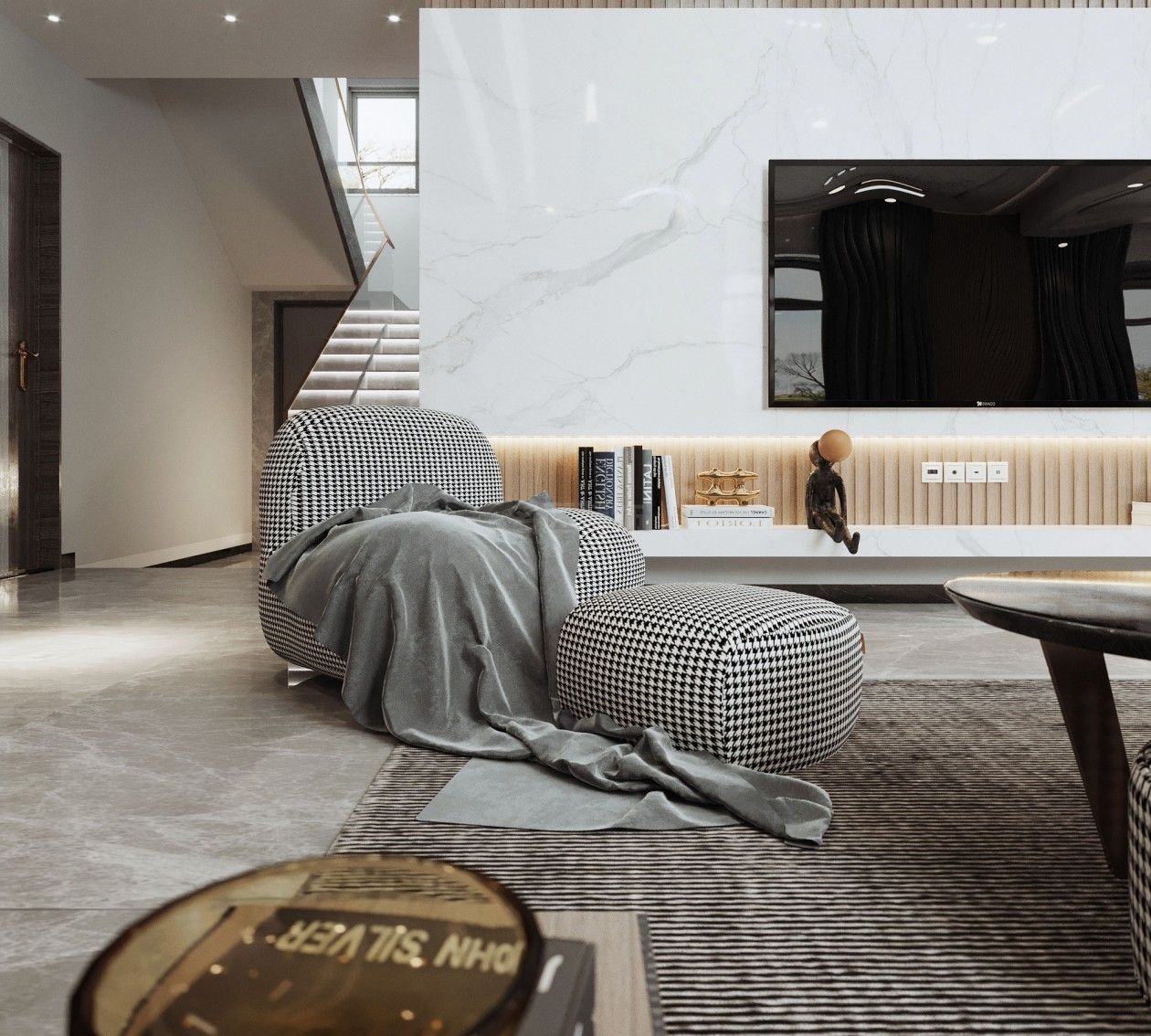 涼山彝族自治州楓丹麗舍復式輕奢風格裝修效果圖