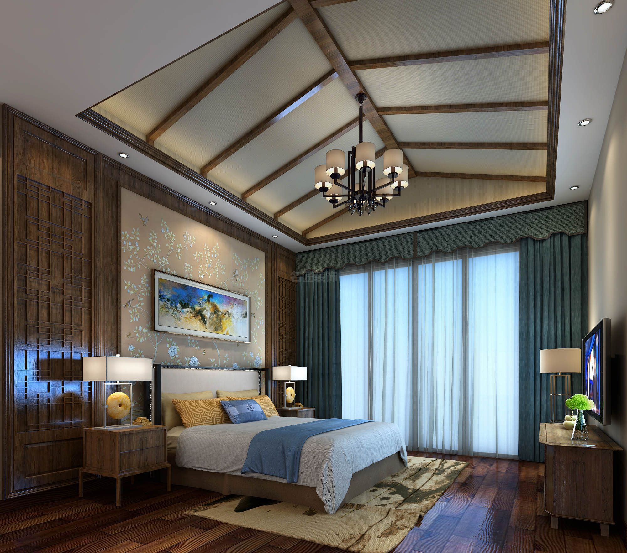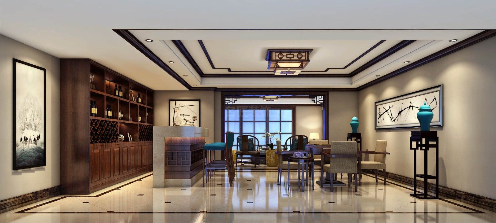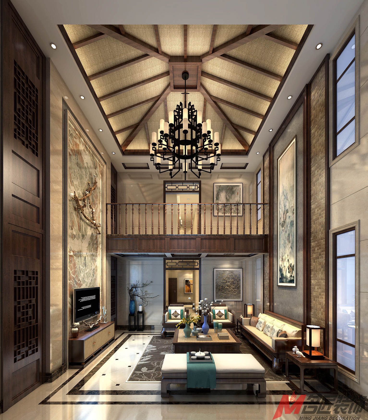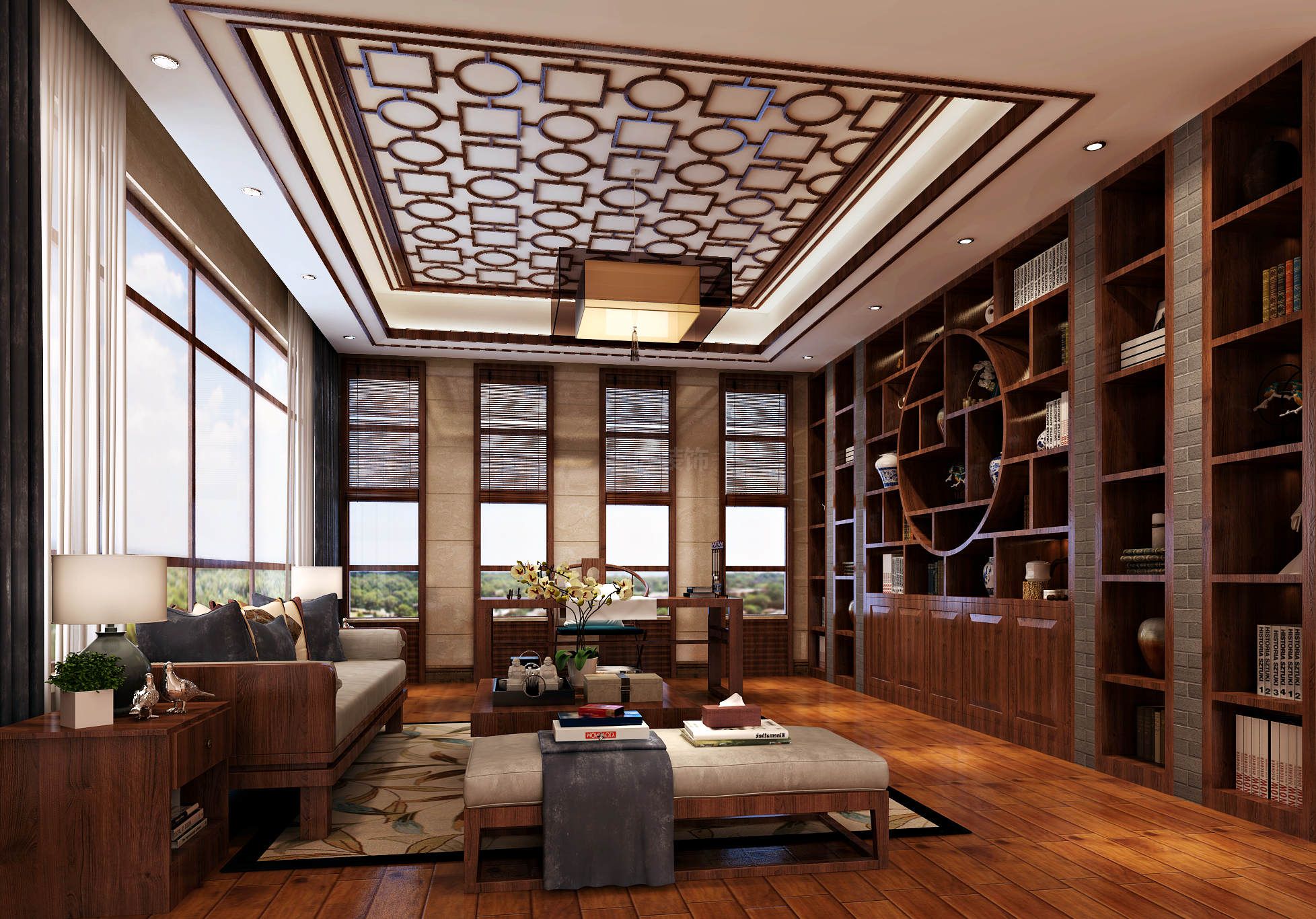 海口信達海天下別墅新中式風格裝修效果圖