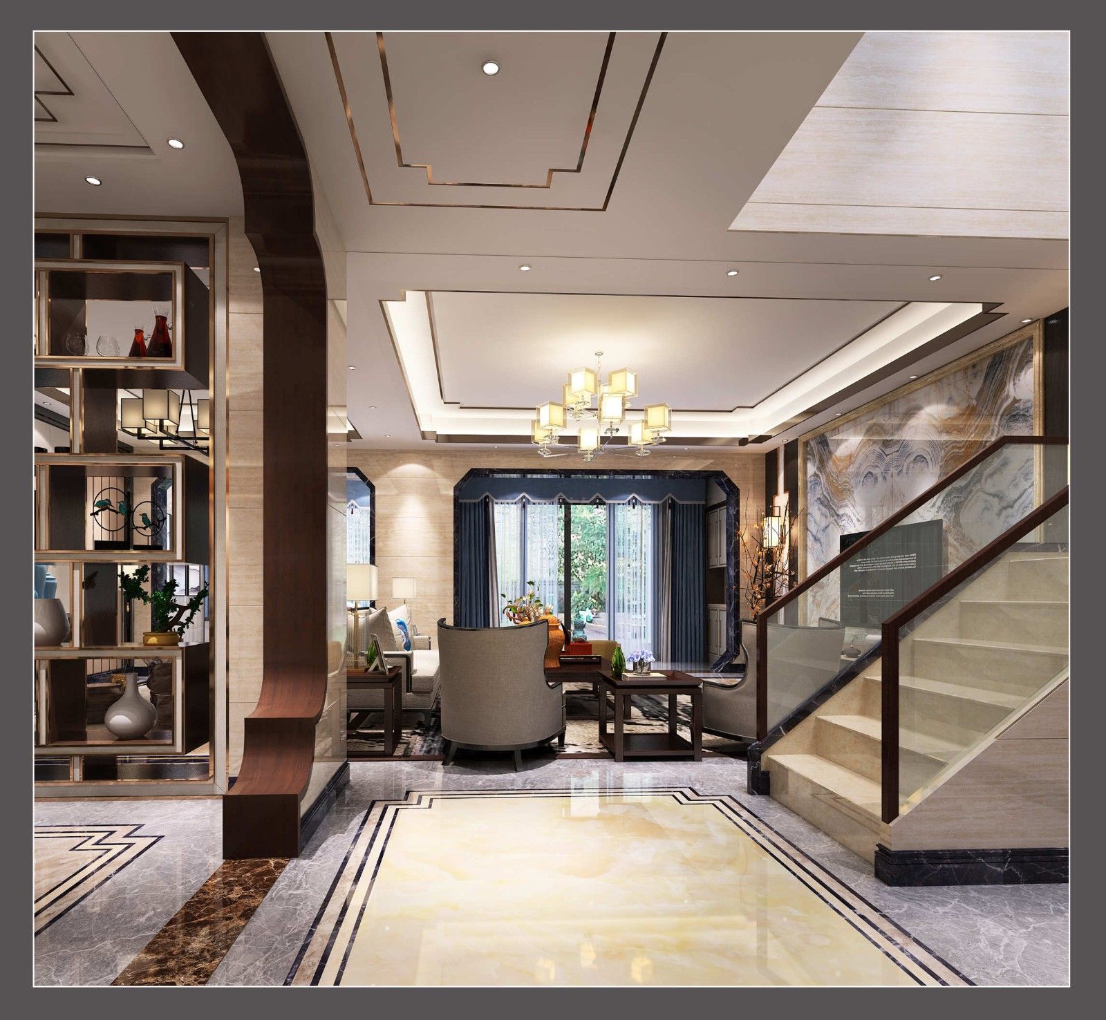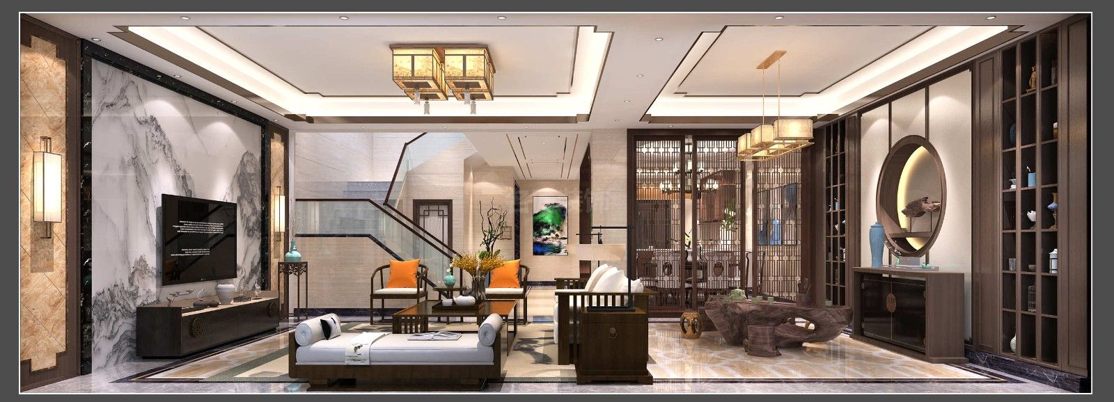 佛山東逸灣翠河澗別墅新中式風格裝修效果圖