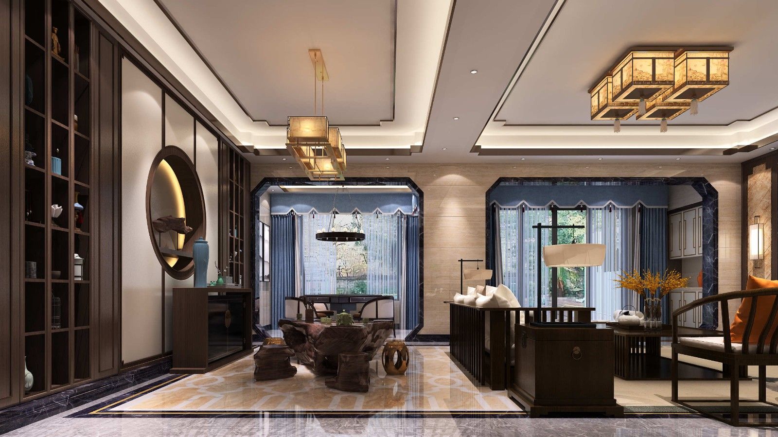 惠州201-300平米新中式風格景安花園室內設計效果圖