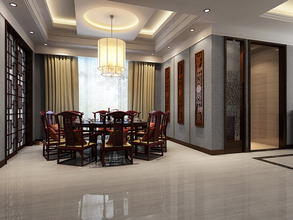紅河哈尼族彝族自治州熙和小鎮別墅新中式風格裝修效果圖