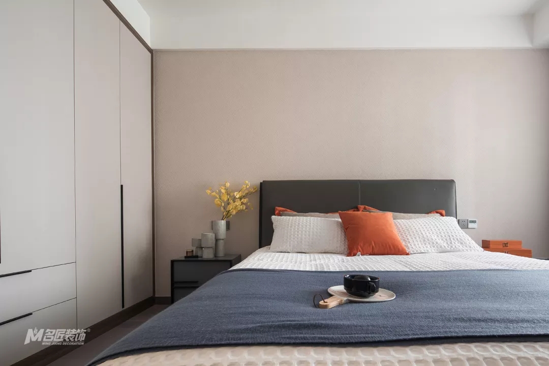主臥的吊燈簡約時尚,整個房間的設計簡單但很有質感和品味。