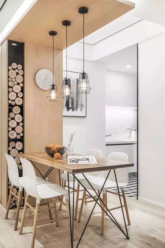 大部分商品房的餐廳,都是沒有硬隔斷的,后期戶主根據(jù)需求再進(jìn)行軟隔斷或無隔斷的設(shè)計(jì)。在光線或戶型條件限制下,很多時(shí)候只能選擇無隔斷的餐廳設(shè)計(jì)。